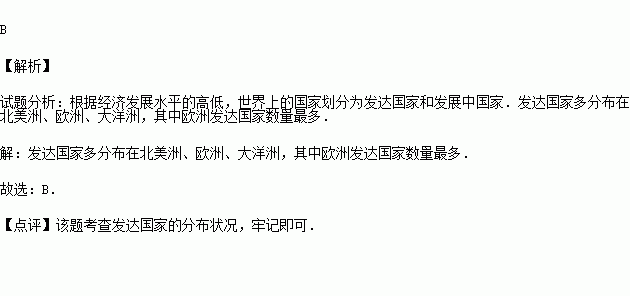 B.发达国家大多分布于北美洲、欧洲、大洋洲