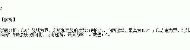 D.以赤道为界,北纬和南纬的度数分别向北、向南递增,最高为180°