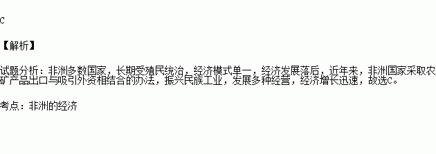 C.农矿产品出口与吸引外资相结合 D.发展“进口﹣加工﹣出口”型工业