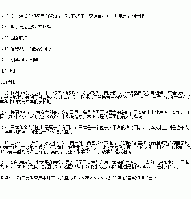 (1)乙国的工业主要分布在 的狭长地带,主要原因是 。