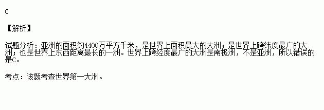 C.是世界上跨经度最多的一个洲 D.是世界上跨纬度最广的一个洲