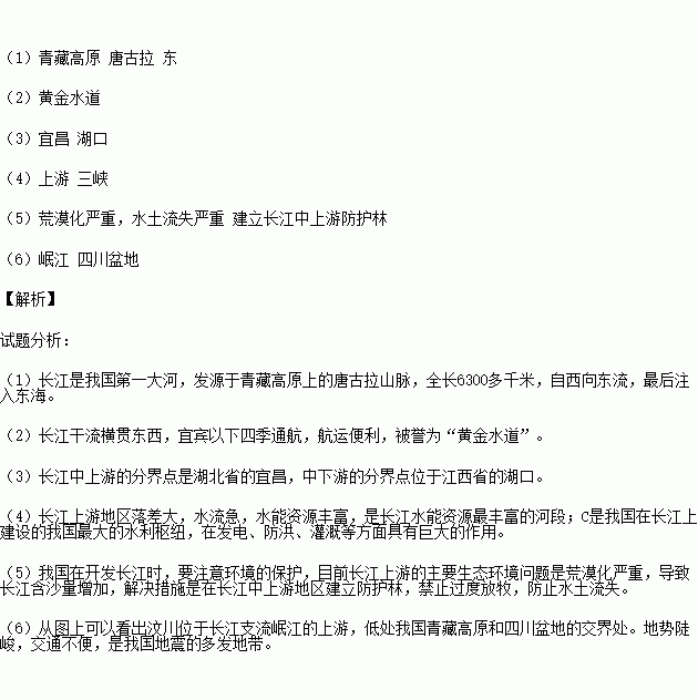 (4)长江水能资源最丰富的河段是 ,我国在长江干流上已经开发建设的水利枢纽C是 。