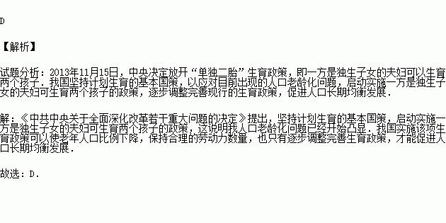 2014年我国部分省、市启动“单独二孩”(一方是独生子女的夫妇可生育两个孩子)政策.“单独二孩”政策实施后将( )