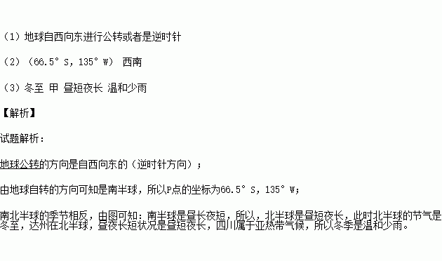 (1)在下图地球公转示意图上画出地球的公转方向。
