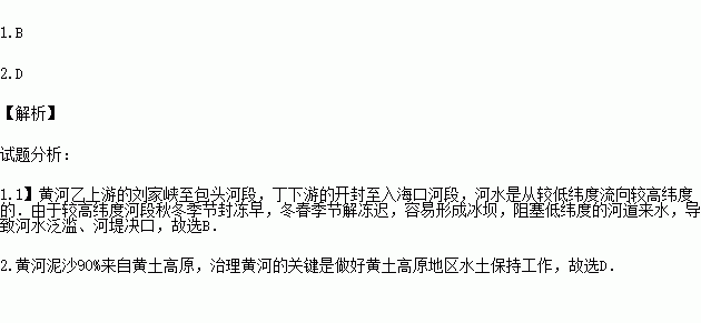 D.丁所处的下游河段泥沙淤积严重,易形成地上河