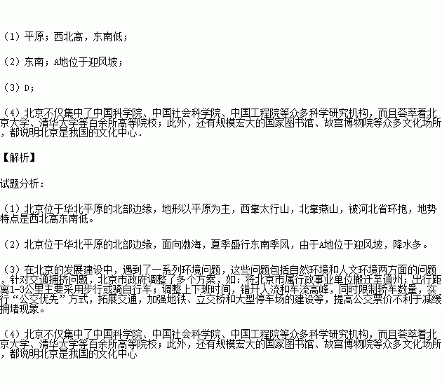 £¨2£©±±¾©µØÇø·¢Ïļ¾Ê¢ÐÐ_________·½ÏòµÄ·ç£¬²¢¼òÒª·ÖÎöAµØÄ꽵ˮÁ¿¶àÓÚBµÄÔÒò£®