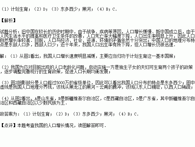 (1)由图1可见,我国人口增长速度明显减缓,主要应当归功于 这一基本国策.