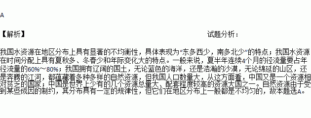 A. 水资源东南少,西北多