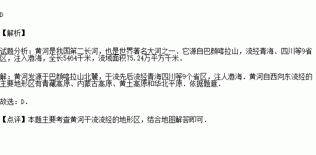 D.青藏高原、内蒙古高原、黄土高原、华北平原