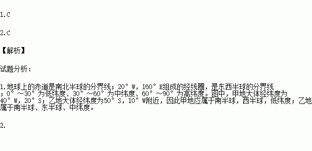1.甲、乙两地分别位于①东半球②西半球③北半球④南半球⑤低纬度⑥中纬度⑦高纬度