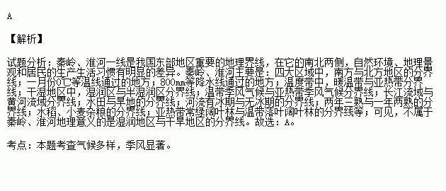 不属于秦岭-淮河的意义的是: