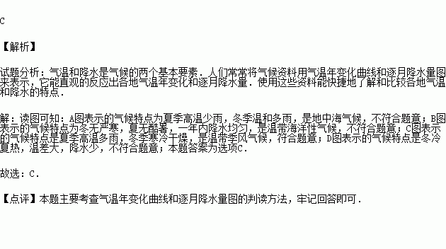 (3)C图是 气候,此种气候面积最大的分布在 .