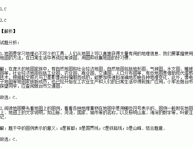 2.下列图例中,表示铁路的是( )