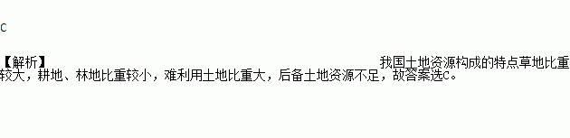 C. 耕地比重小,难利用土地比重大 D. 土地资源类型少,耕地、草地比重大