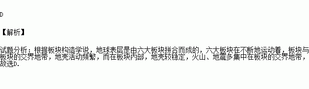 C.板块与板块交界地带,地壳比较稳定