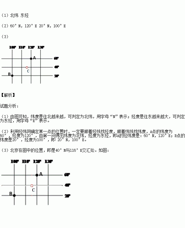 (2)写出图中A、B的经纬度 A(____________) B(____________)