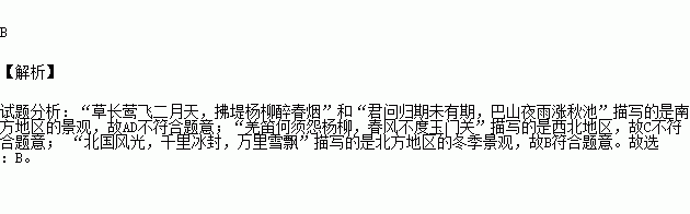 下列诗句中,形象地反映了我国北方地区冬季景观的是( )