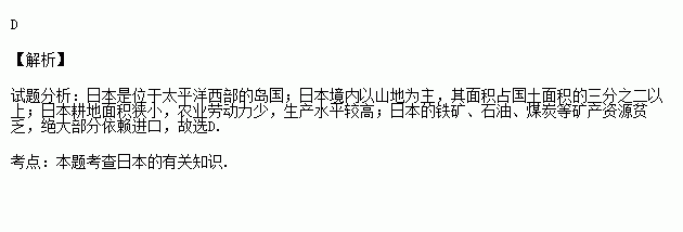 D.日本的铁矿、石油、煤炭等矿产资源贫乏,绝大部分依赖进口