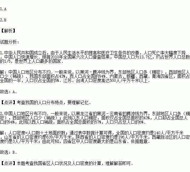 A.人口分布疏密不均 B.人口增长速度快