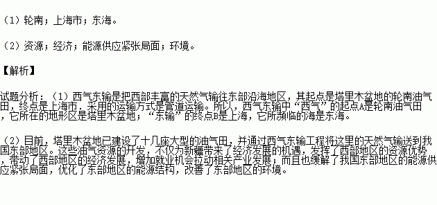 (1)西气东输中“西气”的起点A是 油气田,它所在的地形区是 ;“东输”的终点B是 ,它所濒临的海是 。
