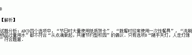 “从点滴做起,共建节约型校园”是我们每个中学生的责任,以下行为符合该倡议的是( )