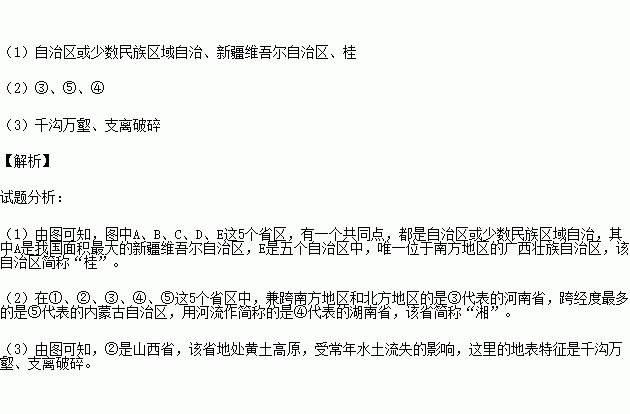 (1)A、B、C、D、E这5个省区,有一个共同点,都是 ,其中A的全称是 ,E的简称是 。