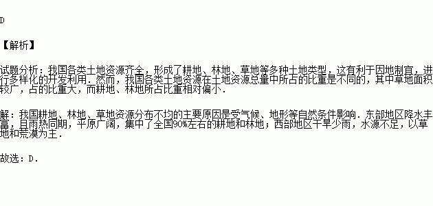 我国耕地、林地、草地资源分布不均的原因是( )
