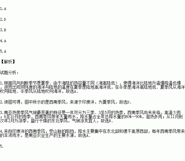4.南亚东北部和西南部地区降水集中,主要原因是