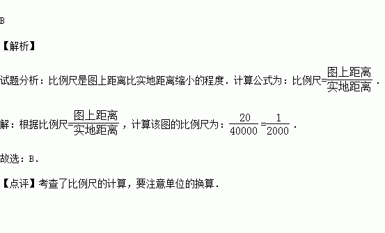 某中学地理兴趣小组绘制一幅校园平面图,图书馆和操场的实际距离是400米,如绘制到图上的实际距离为20厘米,则同学们采用的比例尺应为( )