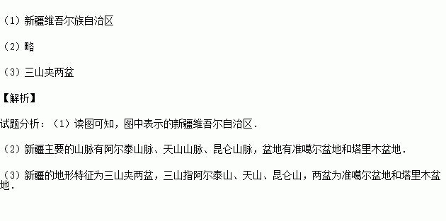 (2)请在图中标注出主要的山脉和盆地名称。