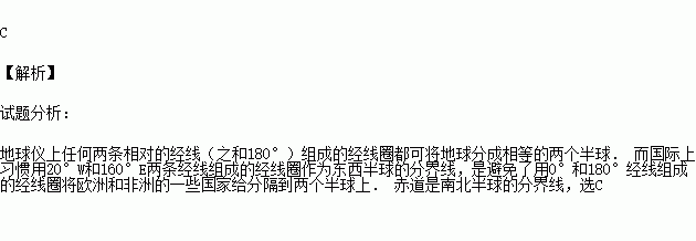 C.20ºW和160ºE为东、西半球分界线