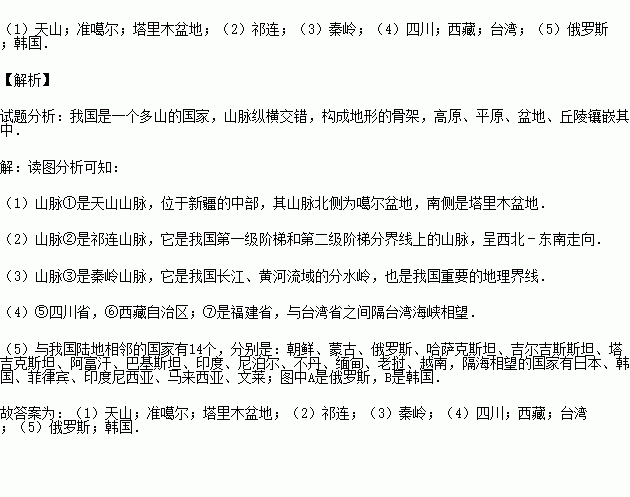 (3)山脉③是 山脉,它是我国长江、黄河流域的分水岭.