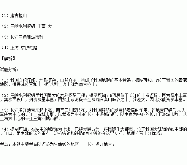 (3)长江沿江工业基础雄厚,位于长江出海口的 ,是我国城市最密集的地区之一,是长江的经济龙头。