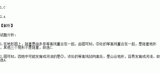1.图中表示陡崖的是 ( )