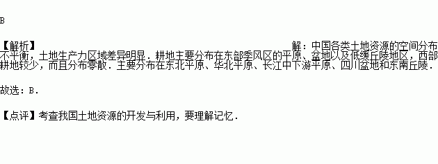A.土地资源分布不均 B.土地资源的总量少
