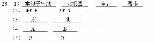 (5)A、B、C三点中,在一年中有极昼极夜现象的是 ,四季变化明显的是 。
