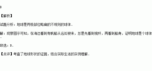 在海边观察远处驶来的轮船,会出现图中①至③所示的现象,这种现象反映的地理事实是( )
