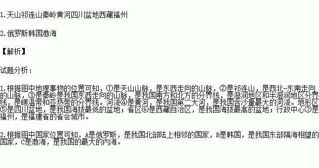 填出图中序号所代表的地理事物名称: