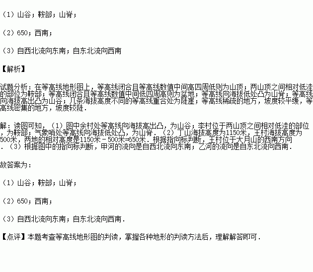 (1)三地所在位置的地形部位名称:余村地处 ;李村地处 ;气象哨位于