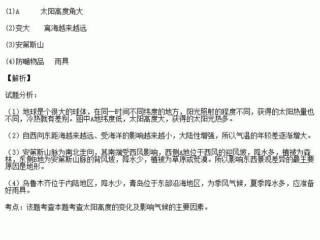 (3)ͼ±ûÖа²µÚ˹ɽÂöÄ϶ζ«Î÷Á½²à¾°¹ÛÃ÷ÏÔ²»Í¬£¬ÈçÎ÷²àµÄAµØÎªÃ¯ÃܵÄÉÁÖ£¬¶«²àµÄBµØÎª²ÝÔ»ò»ÄÄ®£¬ÆäÔÒòÊÇ________________________________________________¶Ô¿ÕÆøÔ˶¯µÄ×èµ²×÷Óã¬Ê¹É½Âö¶«Î÷Á½²àË®·ÖºÍÆøÎÂ×´¿ö²úÉú²îÒì¡£