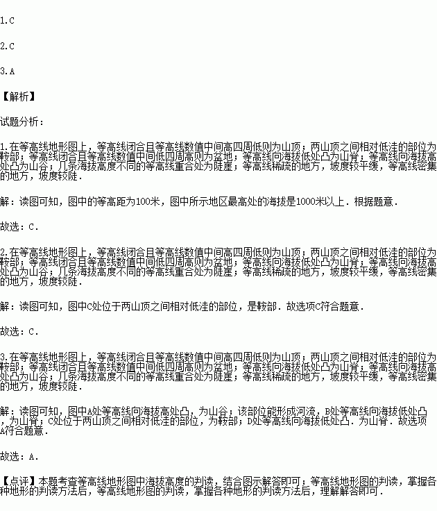 3.学生在爬山过程中想在一处景色秀丽的河边休息,此处一般在图中的( )处.