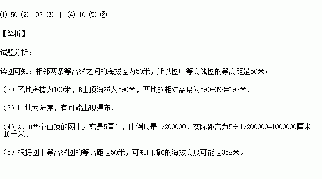 (4)若图中A、B两个山峰的距离是5厘米,根据图上比例尺,计算A、B两地的实际距离是 千米。