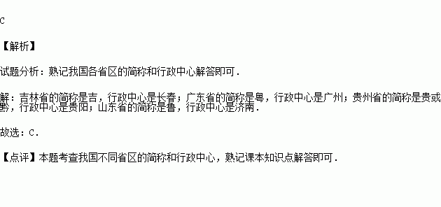 A.吉林省﹣吉﹣吉林 B.广东省﹣广﹣广州
