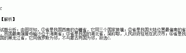 D.④省是我国的黑龙江省,它同俄罗斯和蒙古两国为邻