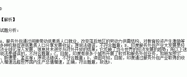读图分析,下列有关印度软件外包产业的叙述正确的是