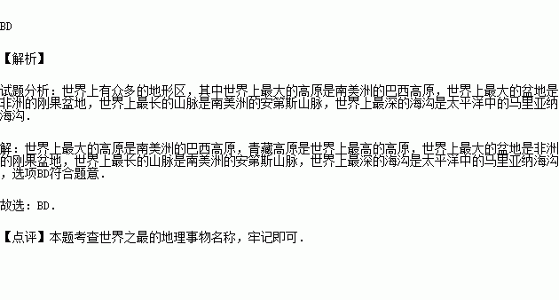A.世界上最大的高原﹣﹣﹣﹣﹣青藏高原