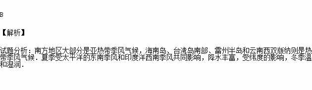 关于我国南方地区气候的正确叙述是