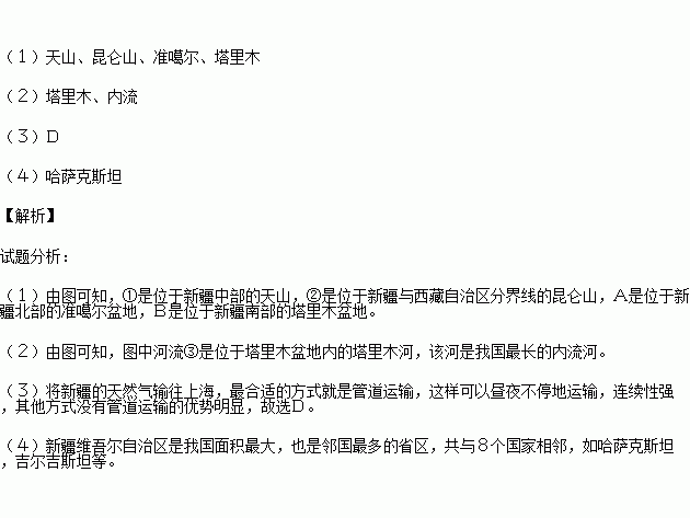 £¨1£©¡°Èýɽ¼ÐÁ½Å衱ÊÇн®µØÐÎÂÖÀªµÄÖ÷ÒªÌØÕ÷£¬Çëд³öн®Ö÷ҪɽÂö¡¢ÅèµØµÄÃû³Æ£º
