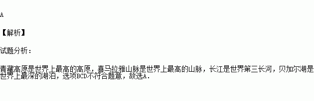 A.青藏高原是世界上最高的高原