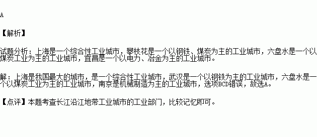 长江沿岸地区是我国发达的综合性工业基地,下列工业中心与其主要的工业部门的组合,与实际情况不相符合的是( )